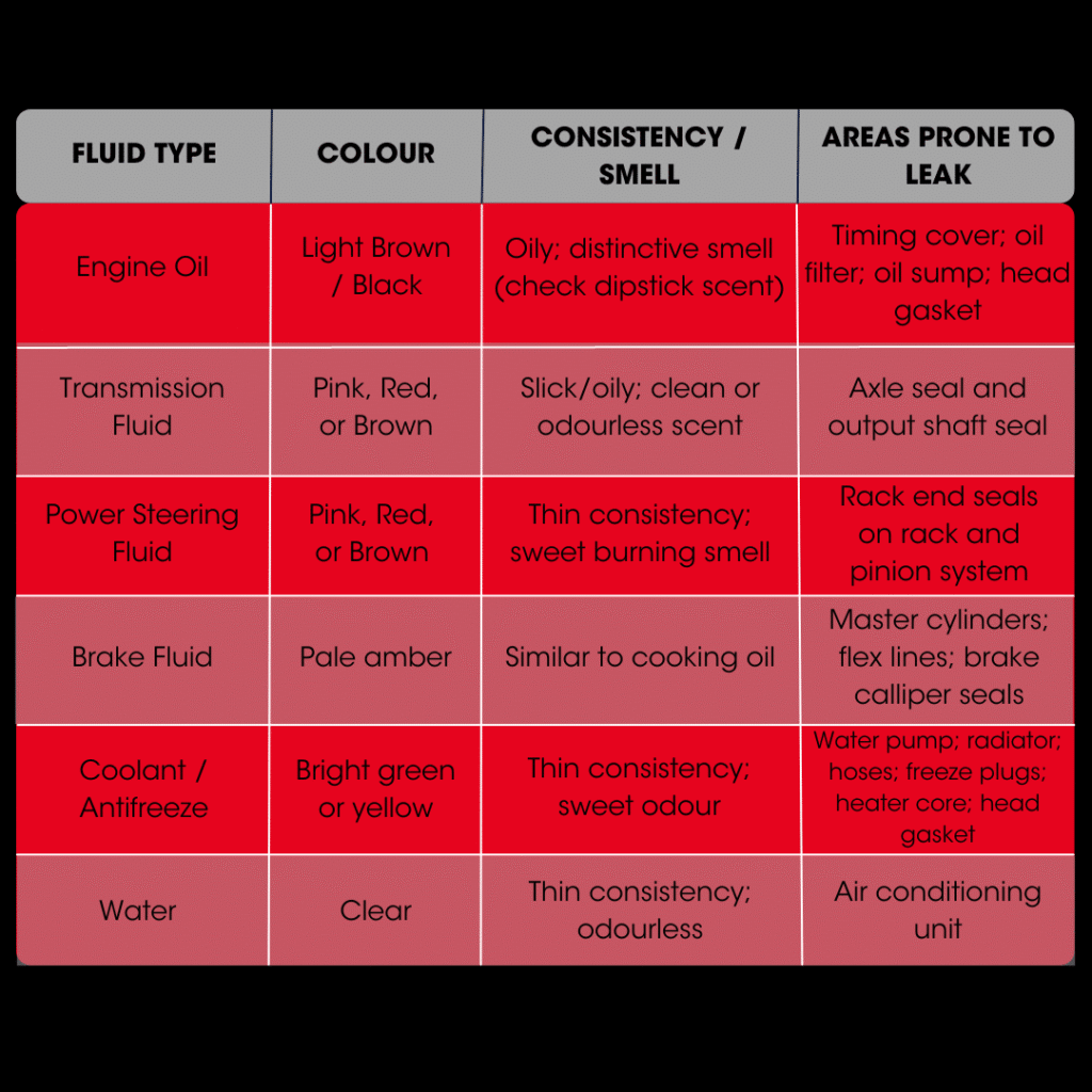 - Note fluid on exhaust shields or manifolds. This is a common odor source.
